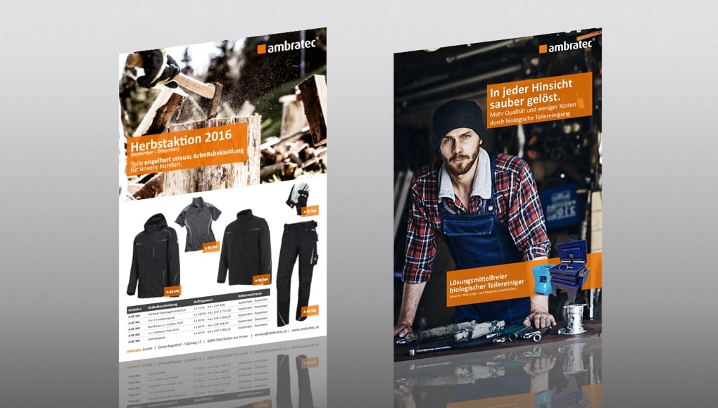 Die anthrazitgraue Fläche symbolisiert unsere Mitgliedschaft in der Berner-Gruppe, während wir mit Orange zu den Werten ambratecs Farbe bekennen.