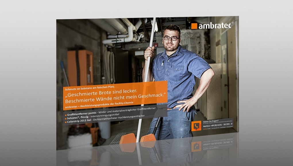 Aber ambratec wäre nicht ambratec, wenn wir nicht zu einem sauberen Logo auch einen aufgeräumten Internetauftritt präsentieren würden. Der beschränkt sich aber nicht nur auf neue Bildwelten und eine pragmatische Unternehmenssprache, die Themen und Lösungen schneller auf den Punkt bringt. Sondern auch auf die Inhalte. Schließlich möchten wir unseren Kunden der Facility-Chemie hochkarätige Lösungen noch schneller anbieten.